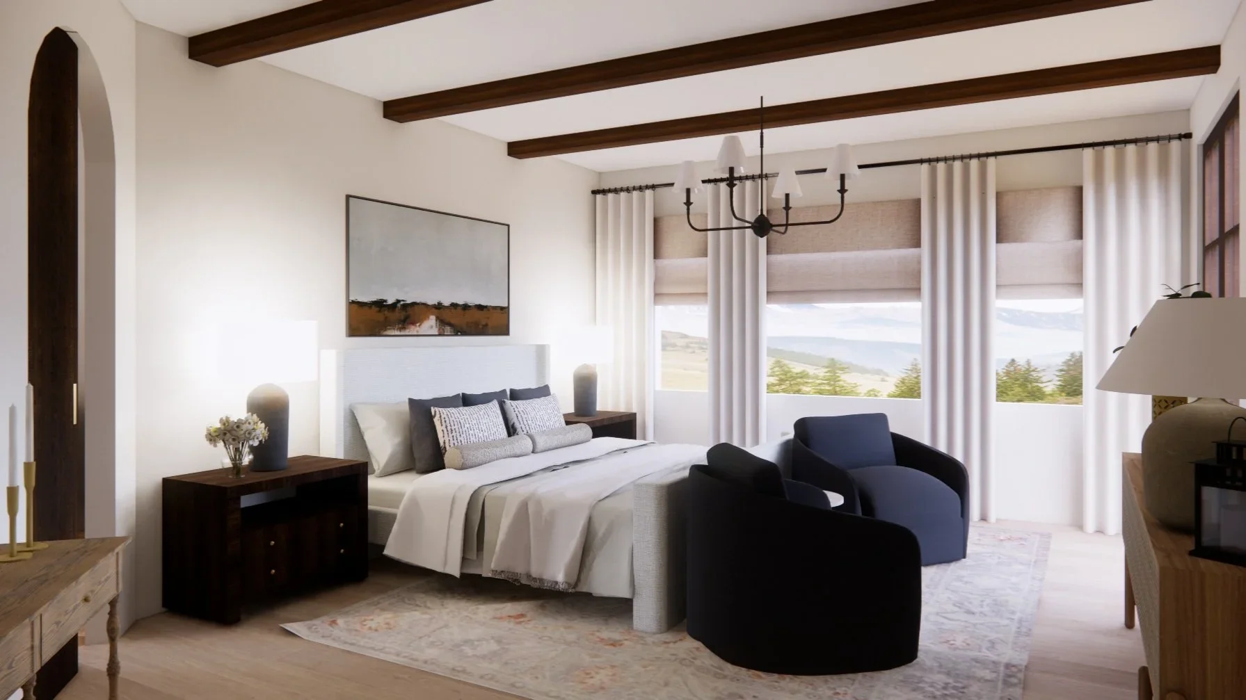 a European inspired primary suite created to transport our clients to the beautiful coast of Italy.